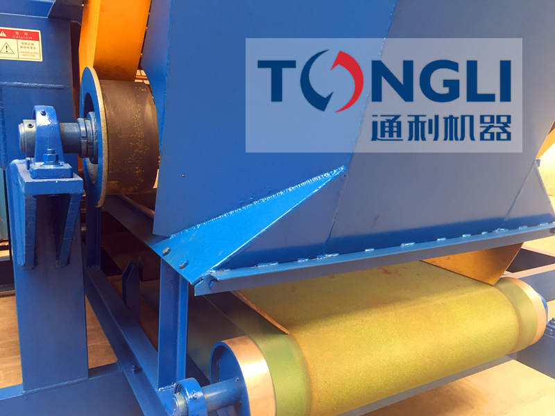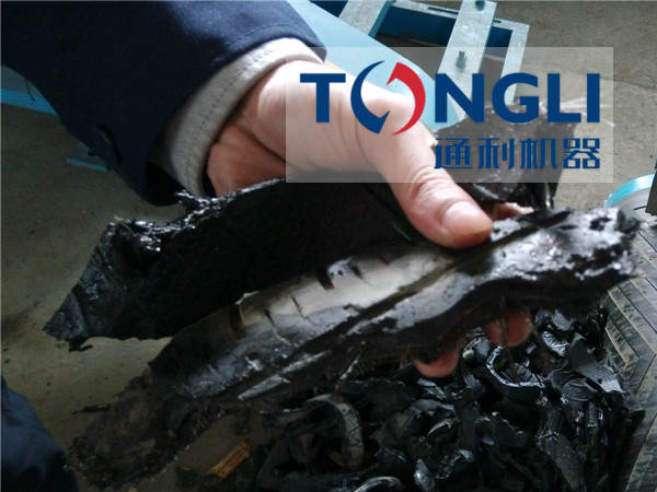 轮胎撕碎机 工作原理是:电机通过传动系统带动破碎室里的刀盘转动,然后将已经去除胎唇钢圈的外径≤Φ1200mm的轮胎用输送机送入该设备的入料斗,轮胎经由入料斗进入破碎室,刀盘以剪切和撕裂的方式对轮胎进行破碎,在破碎过程中,小于或等于50×50的物料从圆网筛中漏出,进入后续工序;于50×50的物料经圆滚筛返回到破碎室进行循环破碎,直至胶块小符合要求后排出破碎机。