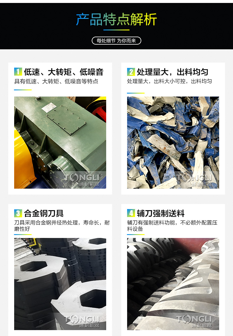 四轴撕碎机是结合市场需求而成的产品。采用微电脑(PC)自动控制,设启动、停止、反转及载自动反转控制功能,主要用于撕碎有一定强度的轻薄金属、废生活垃圾等,增加其堆积密度以便于运输,再利用。